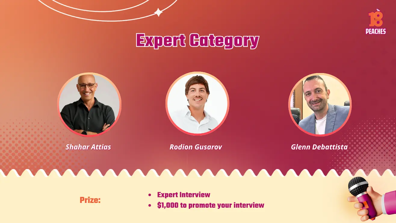 The Expert Category takes center stage. Three winners are invited for filmed interviews at SiGMA Central Europe (Nov 3–6), Stand 4244, Hall 4A, and receive $1k for media buying from 18Peaches to support post-event coverage. Our team is coordinating interview slots with them now.